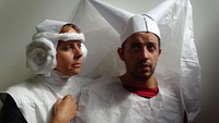 Aymeric Hainaux is a visual artist, a poet and a powerful, inexhaustible beatboxer, freewheeling between pulses, beats and feedbacks. He confronts dancer François Chaignaud in a tiny ring, face to face, body to body. Is it a concert, a battle, a ritual, a pastoral scene? They seek each other out, test and defy each other until they achieve a physical and musical alchemy where sound, voice and rhythm come together. Their duo resembles a mirliton, a word that can refer to a musical instrument, a headdress, a gold coin or a pastry: polysemic, sonorous and elusive.